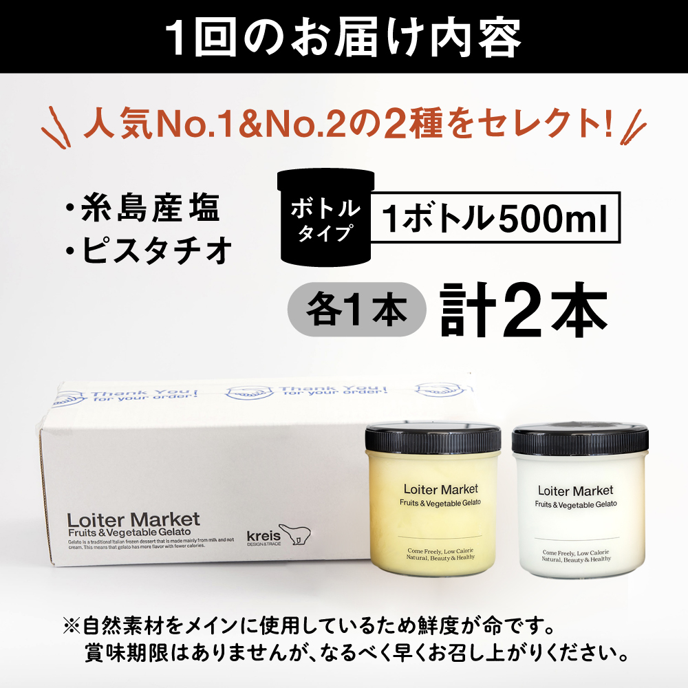 - 【全12回定期便】糸島で行列のできる アイスクリーム屋 ジェラート ボトル 2個セット 当店NO.1、2 ピスタチ/塩 糸島市 / LoiterMarket ロイターマーケット [AGD025]