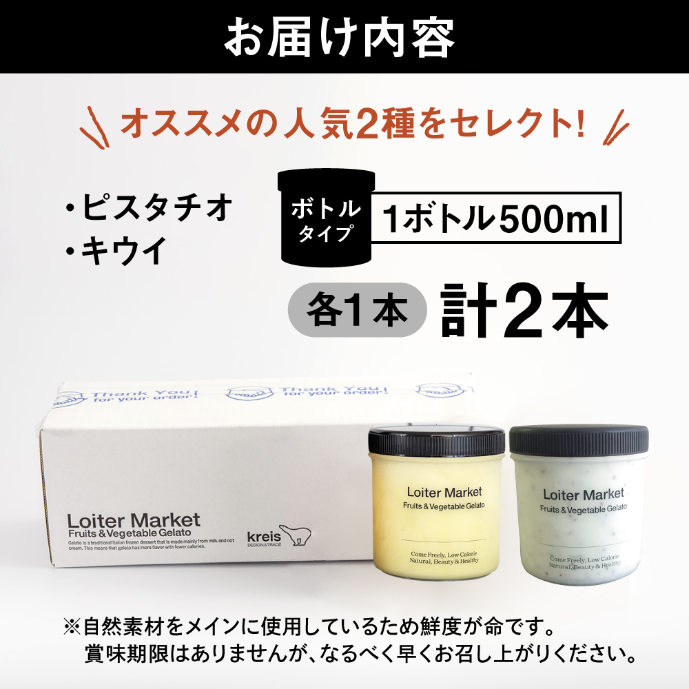 - 糸島で行列のできる アイスクリーム屋 ジェラート ボトル 2個 セット : ミルク/ソルベ ( ピスタチオ/キウイ ) 糸島市 / LoiterMarket ロイターマーケット [AGD006]