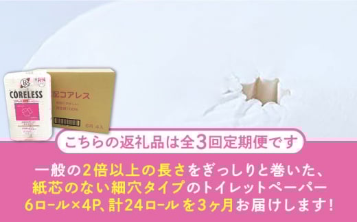 - 【全3回定期便】【細穴タイプ】 トイレットペーパー ダブル 24ロール 長巻き 65m (6ロール×4パック) 宅配 コアレス 《豊前市》【大分製紙】 [VAA063]
