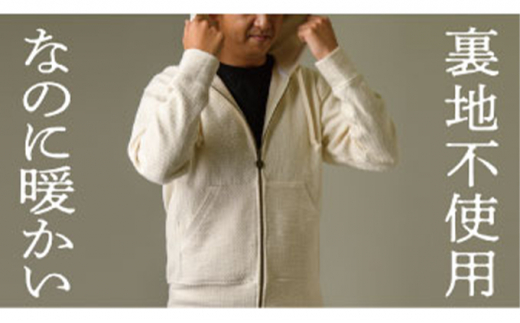 【Lサイズ】柔道衣メーカーが織り上げた生地で作る九櫻刺子パーカー 生成り
