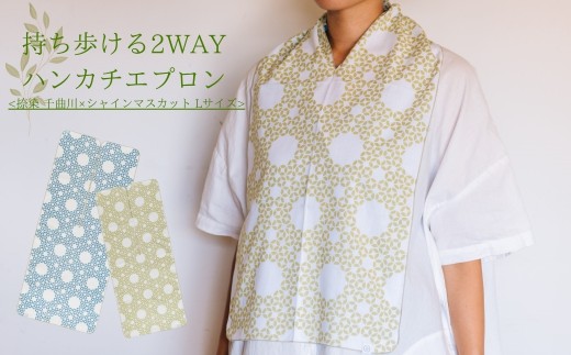 - 持ち歩ける2WAYハンカチエプロン<捺染 千曲川×シャインマスカット Lサイズ>| 伝統技法 食事用 千曲市 長野県産 信州