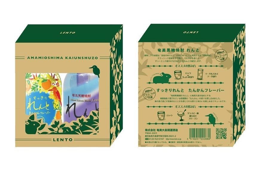 - 【お中元用】世界遺産登録記念・黒糖焼酎 れんと【奄美の風】300ml×2本セット<専用化粧箱入り>