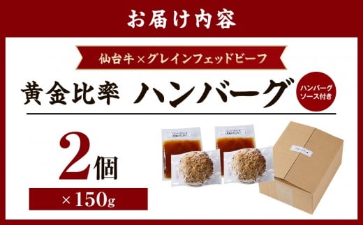 牛肉 ハンバーグ 300g ( 150g × 2個 ) 仙台牛 グレインフェッドビーフ ソース付き 肉 お肉 にく 牛 冷凍 ギフト 温めるだけ 湯煎 湯せん 人気 おすすめ 仙台 宮城