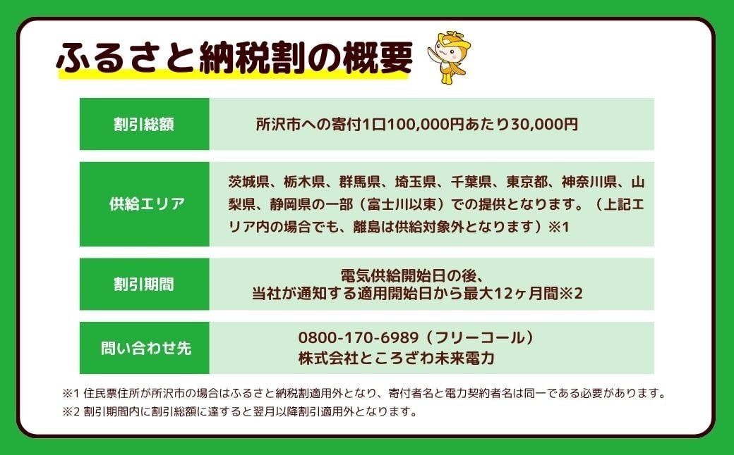 埼玉県所沢市から地産電気をお届け! トコろんでんき再エネプランふるさと納税割 | 電力 電気 エコ SDGs 再エネ 再生可能エネルギー ところざわ未来電力 埼玉県 所沢市