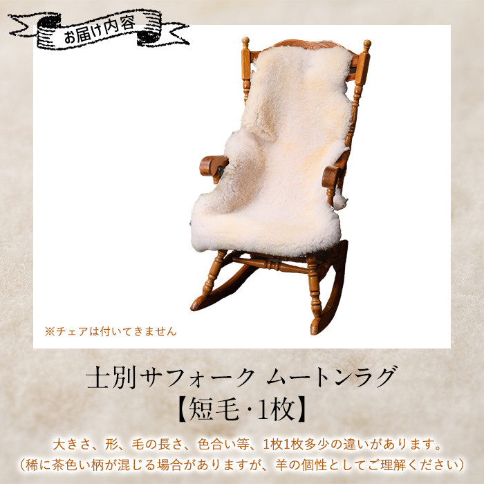 【F7037】士別 サフォーク ムートン ラグ ( 短毛 ・ 1枚 ) 羊 ラグ ムートン サフォーク インテリア 敷物 保温 おしゃれ プレゼント ギフト 【ペコラファーム】