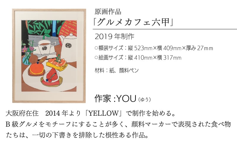 - 作家YOU 原画作品『グルメカフェ六甲』額装付き 絵画