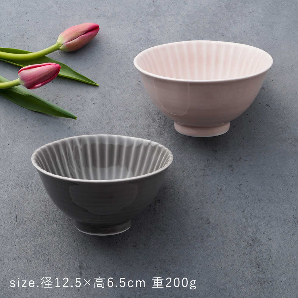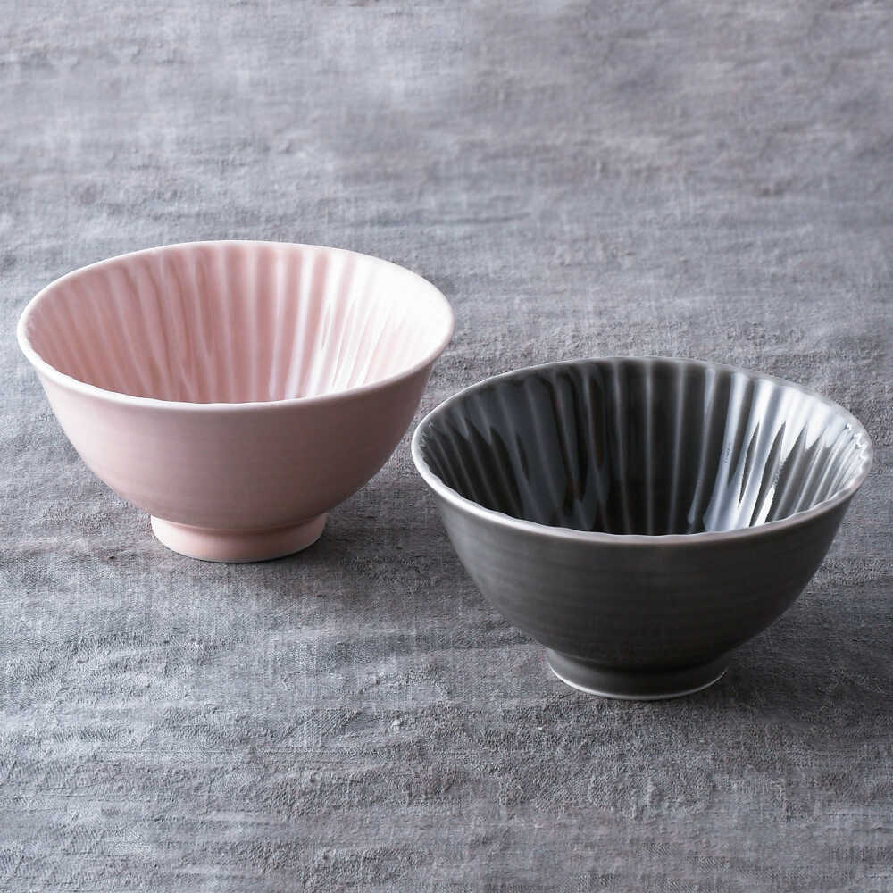 - 【ふるさと納税】【波佐見焼】しのぎ 茶碗 大2個セット グレー・ピンク 食器 ちゃわん【一龍陶苑】[CC93]