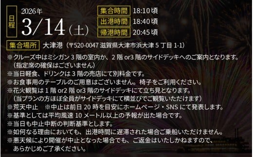 - 2026年3月14日開催!ミシガン・ライトクルーズ3F(お食事なし)/1名 [NE001] / ミシガンクルーズ 琵琶湖 びわ湖 クルーズチケット ナイトクルーズ 観光 旅行 体験型チケット 花火