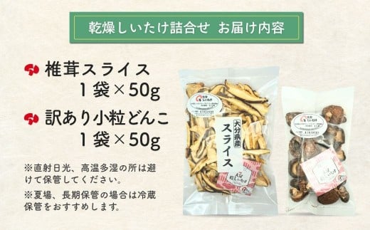 - 【訳あり】乾燥椎茸(シイタケ)椎茸スライス50g・小粒どんこ椎茸50g 詰合せ | しいたけ シイタケ 乾し椎茸 干し椎茸 しいたけスライス 大分産シイタケ 干椎茸 菌床しいたけ きのこ ギフト 国産 産地直送 津久見市