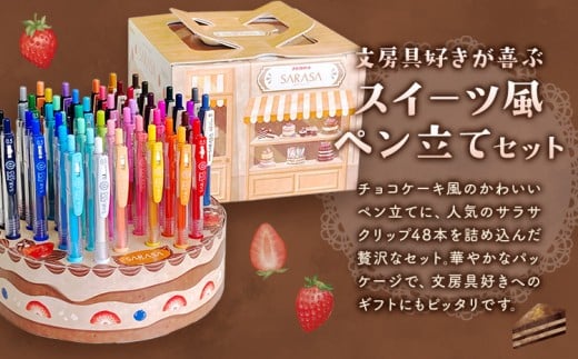 【ゼブラ】ジェルボールペン サラサクリップ48本 ケーキ型ペン立てセット 0.5mm 株式会社ナカダ 《30日以内に出荷予定(土日祝除く)》栃木県 野木町 ペン zebra 文具 文房具 かわいい ペン立て プレゼント ケーキ インテリア デコレーション