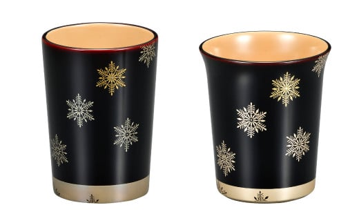 - 輪島塗 ペアフリーカップ(溜内白塗 スノークリスタル蒔絵)