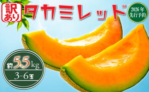 【 2026年 先行予約 】 訳あり メロン 赤肉 約5.5kg 以上 (2~6L) (約3~6玉) 果物 くだもの フルーツ タカミレッド めろん meron 貴味レッド デザート 糖度 おすすめ 高級 人気 旬 訳アリ 青果 贈り物 ギフト プレゼント 産地直送 送料無料 千葉県 旭市 たかの果樹園 tke004_X1
