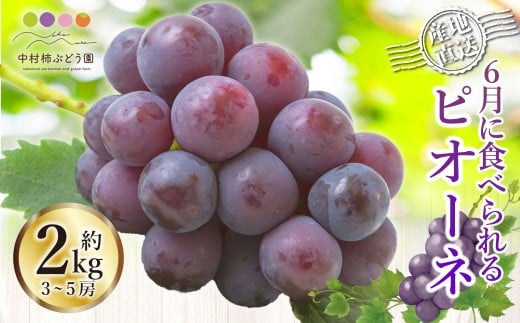 【先行予約】中村柿ぶどう園 6月に食べられるぶどうピオーネ 3房から5房 (約2kg) 【2026年6月上旬~6月下旬より順次発送予定】 葡萄 ぶどう ブドウ ピオーネ 果物 くだもの フルーツ 果実 福岡県 うきは市 冷蔵