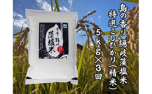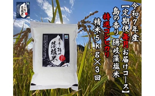 - 0220 令和7年産【定期便 毎月お届けコース】島の香り隠岐藻塩米特選コシヒカリ 精米5㎏×3回