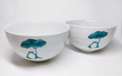 九谷焼 組飯椀 カエルとハス