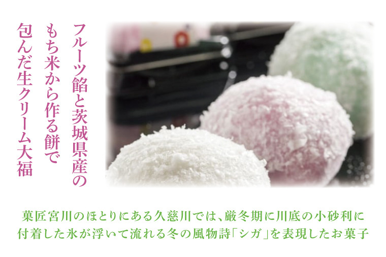 - 【モンドセレクション3年連続金賞受賞】奥久慈大子銘菓「久慈川の氷華餅(しがもち)」【桐箱24個入】|茨城県 大子町 奥久慈 袋田 久慈川 お菓子 和菓子 生菓子 和洋折衷 大福 生クリーム 餅 餡 フルーツ 梅 ブルーベリー マンゴー こしあん 抹茶 お取り寄せ お中元 お歳暮 贈答 贈り物 のし 熨斗 包装 プレゼント 指定日 日時指定(BF012)
