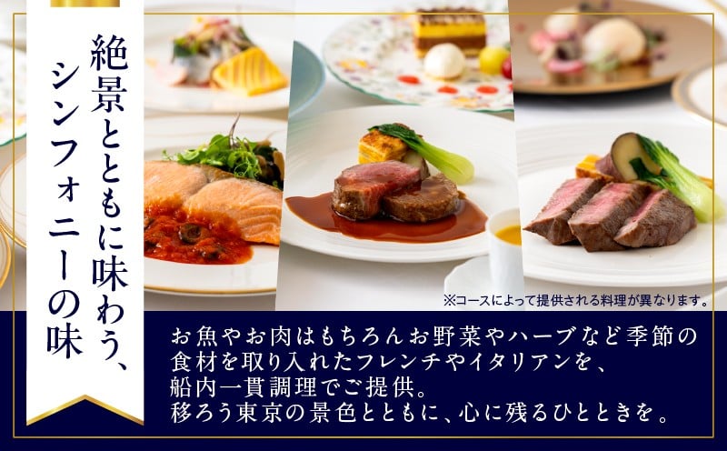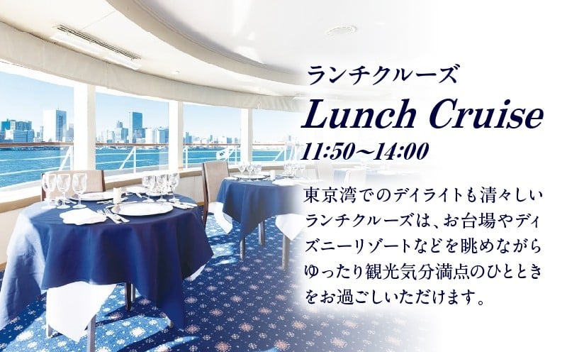 ランチクルーズ 2名さま 各コース(イタリアン・フランス料理) │ 東京 都内 東京湾 お台場 クルージング 観光 旅行 体験 体験型 デート 記念日 誕生日 船上 遊覧 景色 絶景 フレンチ ペア チケット 乗船券 食事券 ギフト 贈り物