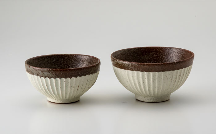 - 【美濃焼】<可愛らしく、持ちやすい>鎬 ごはん茶碗S・Lセット 塗分【藤山窯】【TOKI MINOYAKI返礼品】 茶碗 ご飯茶碗 食器 [MAH045]