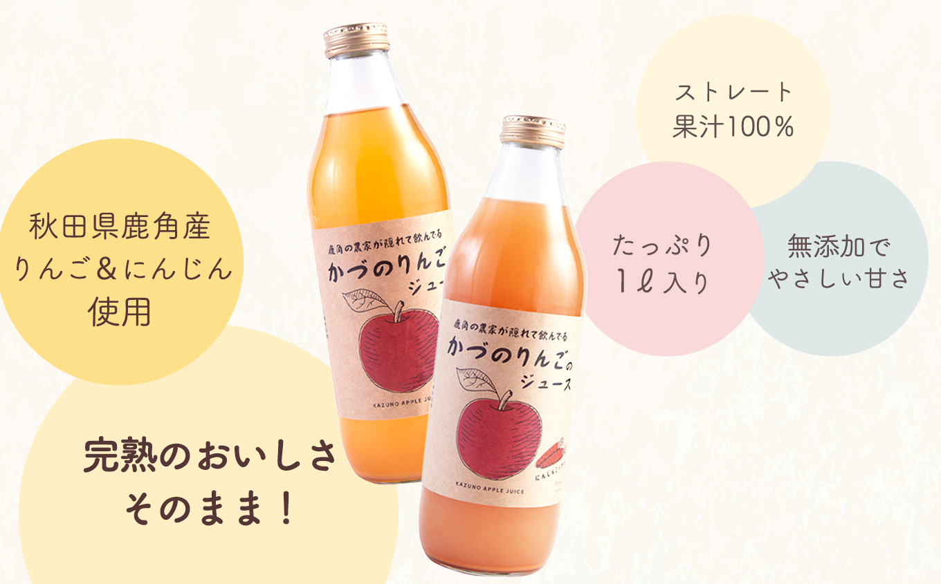 農家が隠れて飲んでる かづのりんごのジュース&にんじんミックス(1L×2本) 各1本 りんごジュースにんじんミックス リンゴジュース りんご ジュース ドリンク 甘い 常温 保存 新鮮 おいしい ストレート 100% グルメ ギフト ふるさと 秋田 鹿角市 鹿角 送料無料 【恋する鹿角カンパニー】