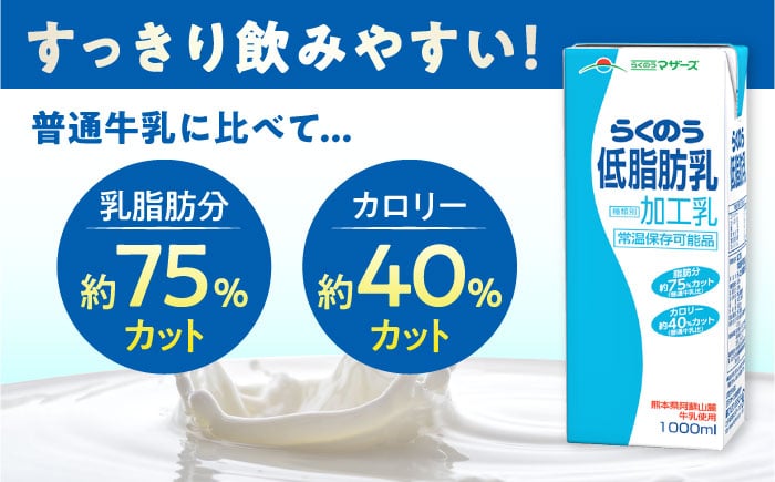 - 【全3回定期便】らくのう低脂肪乳 ロングライフ 1000ml(6本入り) 6L【合同会社 福福堂】低脂肪乳 ミルク カルシウム 牛乳 常温保存 長期保存 送料無料 [AYAC033]
