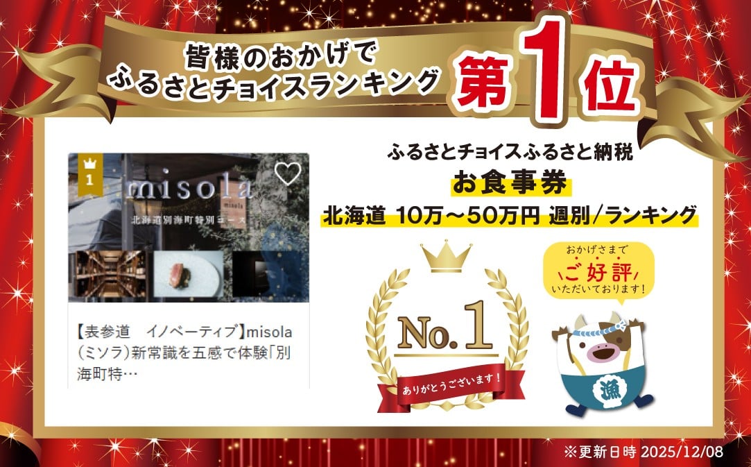 御礼!ランキング第1位獲得!【表参道 イノベーティブ】misola(ミソラ)新常識を五感で体験「別海町特別コース」食事券2名様【CC0000244】( ふるさと納税 レストラン ディナー コース料理 ふるさと納税 食事 ふるさと納税 食事券 東京 ふるさと 食事券 ふるさと 食事 ふるさと 食事券 東京 ふるさと納税 東京 食事券 ふるさと納税 チケット )