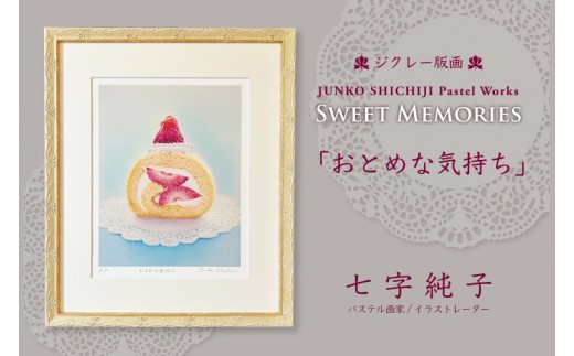 - 七字純子パステル画 SWEET MEMORIES「おとめな気持ち」【ジクレー版画】【パステル画 版画 ジグレー版画 おとめな気持ち 苺 ロールケーキ 水彩紙 七字純子 アート 茨城県 水戸市】(FZ-2)