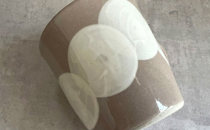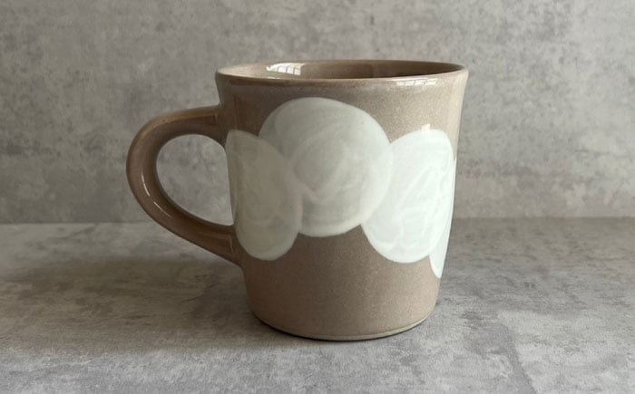 - 【瀬戸焼】 マグカップ (ベージュ) 2個 水玉つなぎ 【カネ三商店】 / 食器 マグ コーヒーカップ ギフト / 瀬戸市 [BBDD063]