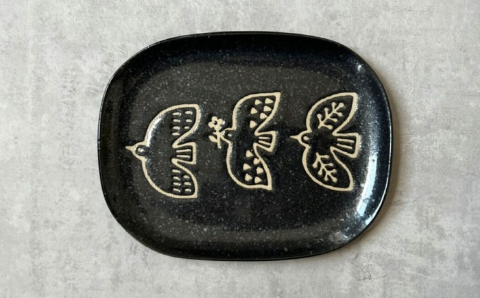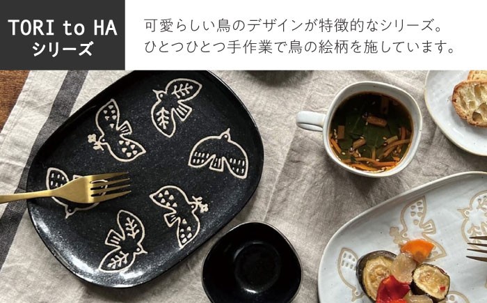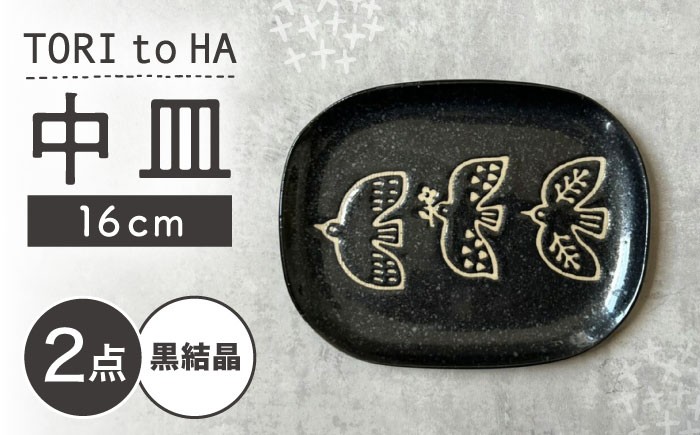 - 【瀬戸焼】 Tori to Ha 中皿 2枚 (黒結晶) 【カネ三商店】 / 食器 皿 プレート ギフト / 瀬戸市 [BBDD054]