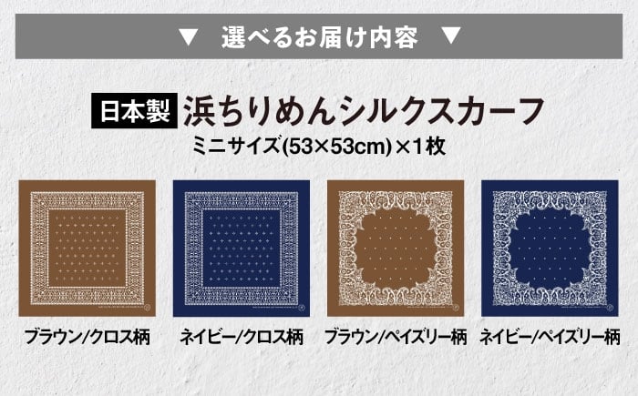- 【選べるカラー/柄】洗えるシルクスカーフ ミニ 浜ちりめんシルク100% 滋賀県長浜市/有限会社吉正織物工場 [AQDQ001]