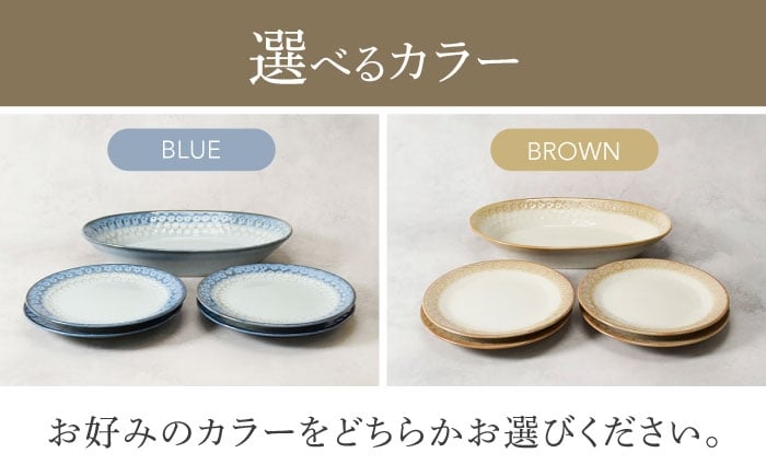 - 【美濃焼】色が選べる スモークリース 印花型 楕円鉢 1点 & 5.0皿 4点 合計5点 セット【カネ定製陶】 [MEI213]