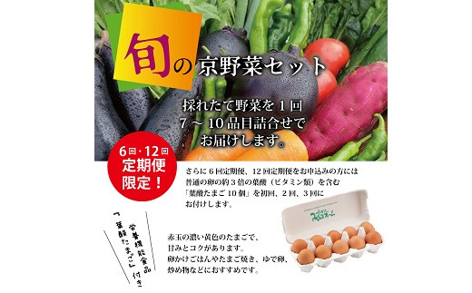- 【6回定期便】旬の京野菜 毎月お届けスペシャルコース(全6回)&『葉酸たまご』10個入り×1パック×3回分付き 《野菜定期便 野菜詰め合わせ 野菜セット 京野菜 旬の野菜 新鮮野菜 有機野菜 減農薬 卵》 ※沖縄・その他離島は配送不可 [090KH001R]