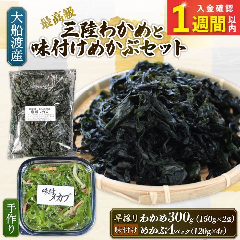 【スピード発送】 味付け めかぶセット 塩蔵 わかめ 300g (150g×2袋) 味付けめかぶ4P 海鮮 海藻 わかめ ワカメ 魚貝類 魚介類 みそ汁 スープ 酢の物 小分け 三陸産 岩手県 大船渡市 [shitabo015]