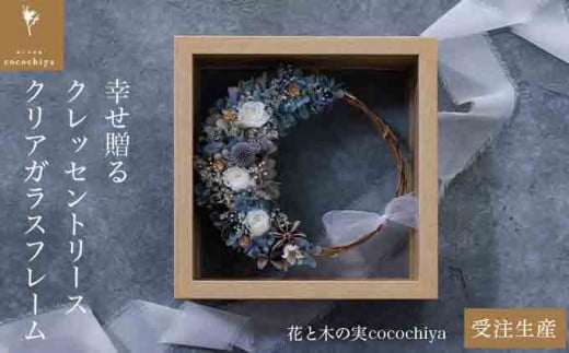 幸せ贈る クレッセントリース クリアガラスフレーム[花と木の実cocochiya] プリザーブドフラワー [H-1]