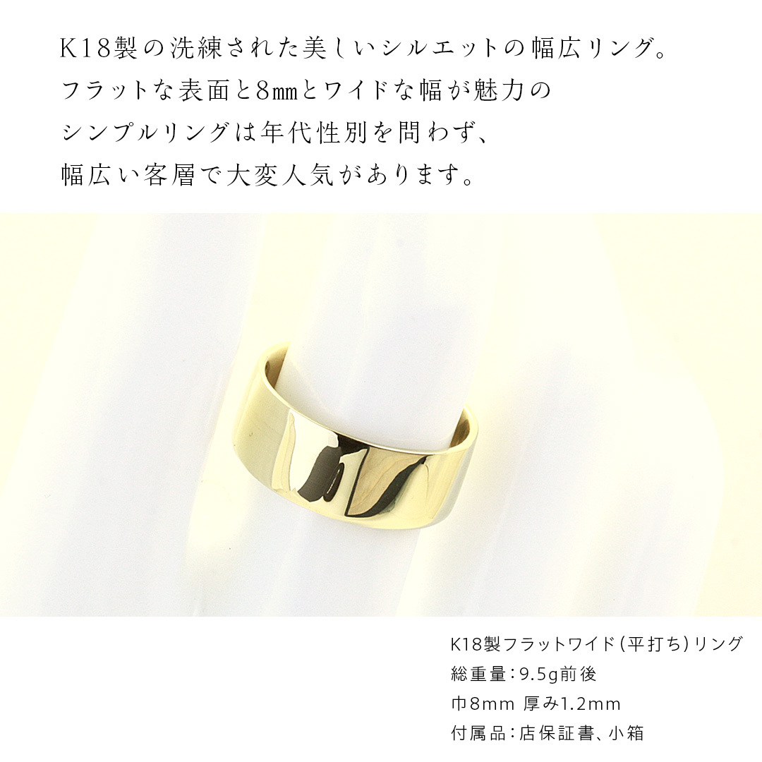 - K18製 8mm フラットワイド リング ( 平打ち ) フォーマル 冠婚葬祭 結婚式 ゴールド リング 指輪 アクセサリー シンプル 18金 金 ギフト 記念 贈り物 贈答用 アクセサリー ジュエリー ジュエリーマーノ 桜川市 [AH149sa]