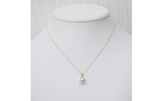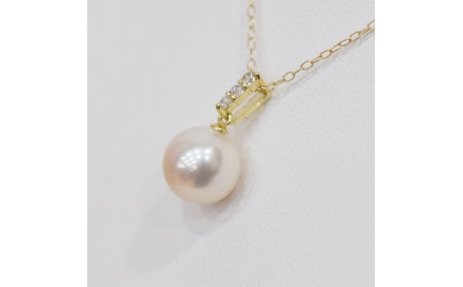 - S101-481_あこや真珠 天草 ネックレス ペンダント ダイヤモンド 0.06ct 8mm - 8.5mm ホワイトピンク K18 3連 K18YG