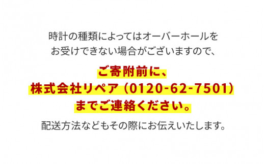 - ★ご寄附前にお電話必須!腕時計のオーバーホール(分解掃除) 国産品 [G-10001] /点検 メンテナンス 分解 修理 ゼンマイ 交換 時計