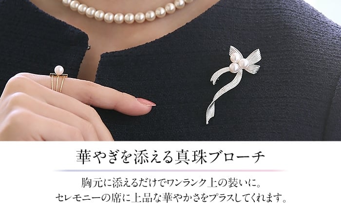 【ふるさと納税】【14営業日以内に発送】あこや真珠 6.5-7.0mm ブローチ シルバー SV リボン パール 真珠 あこや レディース アクセサリー ジュエリー フォーマル 冠婚葬祭 アコヤ真珠 贈り物 長崎県 長崎市 送料無料