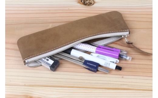 ペンケース グレー [アトリエSASSA 富山県 朝日町 34310053] ペン 革 おしゃれ 手作り シンプル レザー