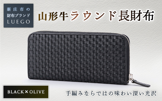 LUEGO 山形牛革 ラウンド長財布 ブラック×オリーブ 入学祝い 卒業祝い 就職祝い 退職祝い 贈り物 贈答 ギフト 人気 誕生日 プレゼント 母の日 父の日 山形県 新庄市 F3S-1767