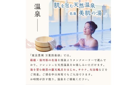 東京豊洲 万葉俱楽部 日帰り入館券1枚 【温泉 24時間営業 足湯 展望 東京湾 夜景 浴衣 非日常 チケット 旅行 トラベル】