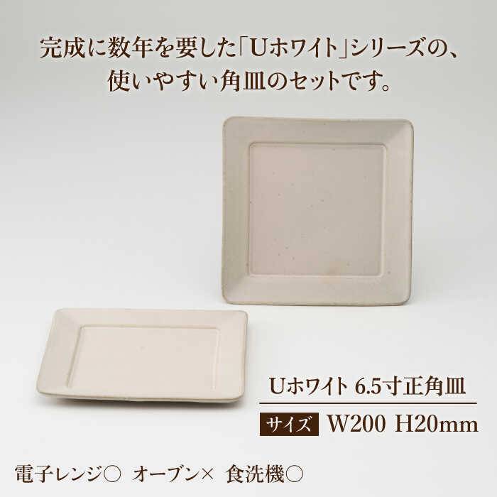 - 【ふるさと納税】【美濃焼】<しっとりとした質感>Uホワイト 6.5寸正 角皿 ペア【藤山窯】【TOKI MINOYAKI返礼品】≪土岐市≫ 食器 プレート 陶器 [MAH015]