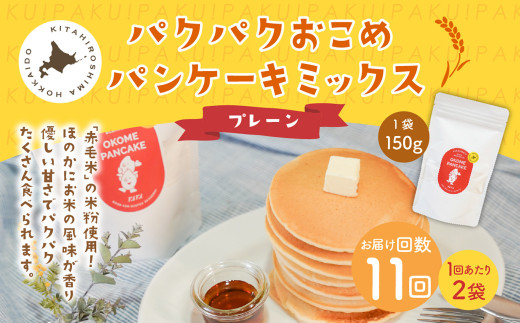 - 【1ヶ月毎11回定期便】パクパクおこめパンケーキミックス(プレーン)スタンドパック 計22パック (2パック×11回) ホットケーキミックス