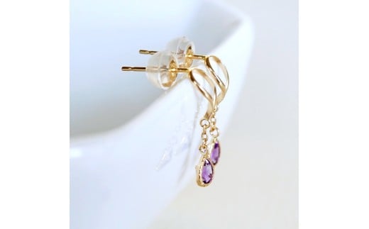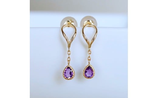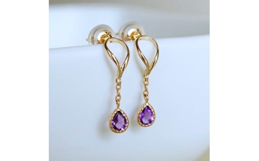 K10YG(10金) イエローゴールド 揺れる アメシスト アンティーク ピアス 保証書付 2274 242-049-a