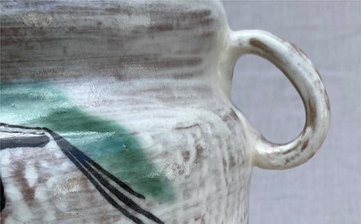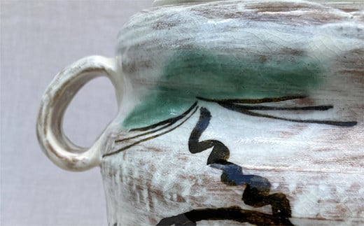 - 叩き二彩唐津 松竹梅文 水指 | 陶器 窯元 茶道具 茶席用 焼き物【叩き二彩唐津松竹梅文水指】日本製 縁起物 伝統工芸 ギフト 贈答 _j-13