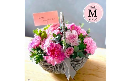 《母の日限定》カーネーションのバスケットアレンジメント(Mサイズ)ピンク系<出荷時期:2026年5月6日~5月9日>