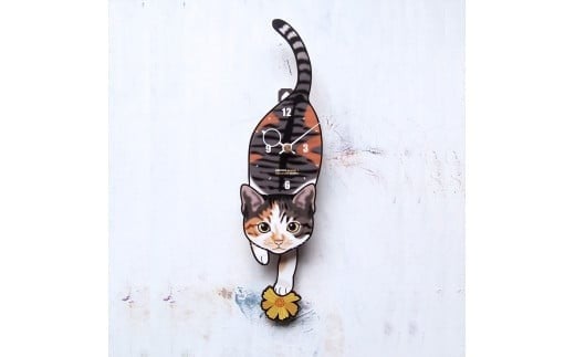 - C-37W4 三毛(子猫)-猫の振り子時計毛糸玉04.YELLOW C-CC-037A
