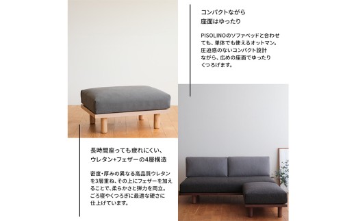 - 府中家具 PISOLINO Ottoman 77 チェリー 生地:ラムース/グリーン / オットマン コンパクト 広座面 ゆったり くつろぎ 高品質ウレタン 疲れにくい 緻密でなめらかな木肌 経年変化で深く豊かな色合いが楽しめる 木製 椅子 インテリア 家具 広島県 No.1101-06