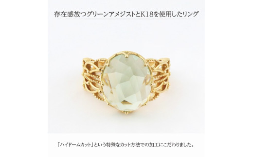 【サイズ:10号】〈 甲府ジュエリー 〉K18 イエローゴールド グリーンアメジストリング【GE-101】