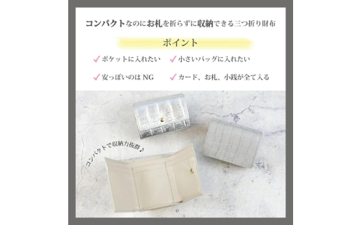 [№5258-8323]1134【 クロコ型キョロメミニウォレット / 全14色 】 思わず誰かに見せたくなるミニマムで大人カワイイコンパクト三つ折り財布 収容力 BOX型 カードケース カードたくさん アイボリー