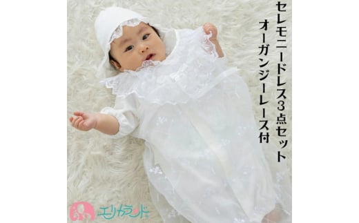 - セレモニードレス 3点セット (ドレス&フード&オーガンジーレース) スムース生地 ボタンカラー:ブルー|赤ちゃん ベビー 男の子 女の子 お宮参り お食い初め [1097]